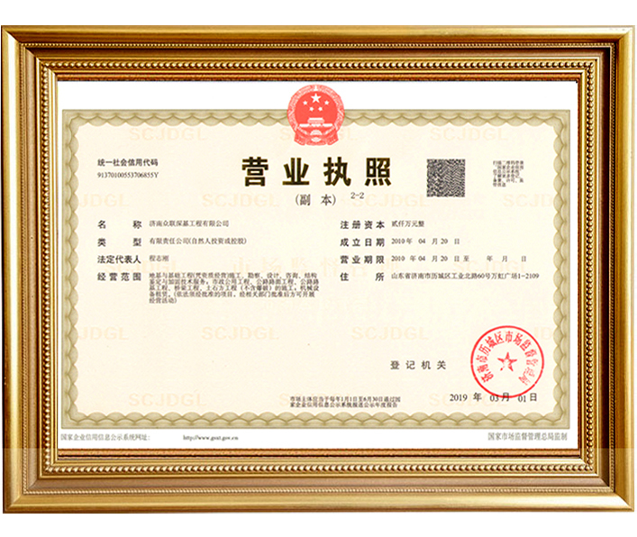 山東眾聯恒信工程集團有限公司成立于2010年4月20日,注冊資金2000萬元,固定資產8500萬元,公司主要從事地基基礎、勘察、設計等方面的專業承包,地基基礎專業施工資質壹級。